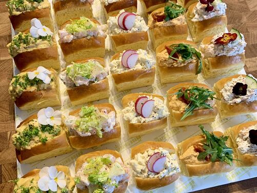 25 Freshly baked brioche buns filled with;