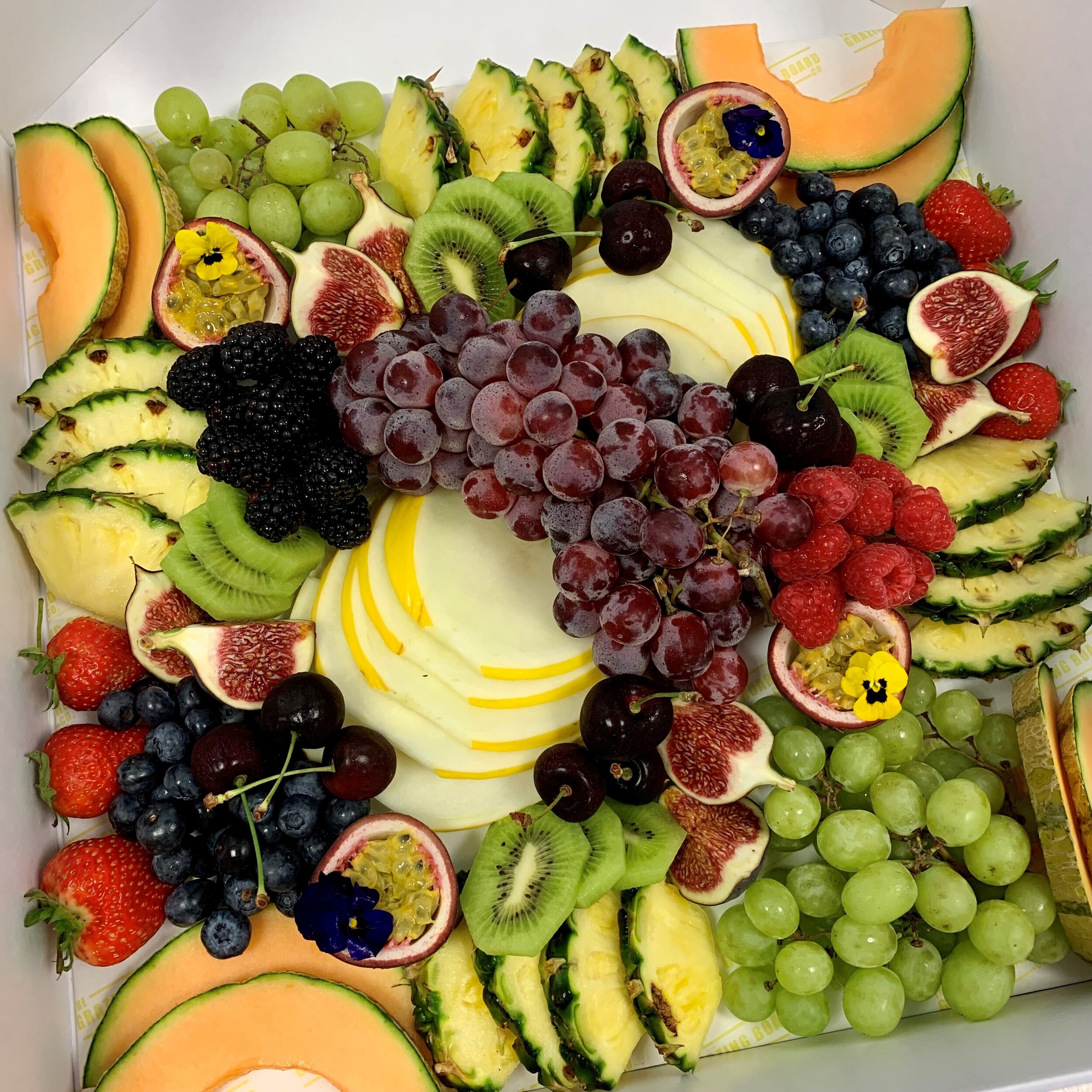 Fresh Seasonal Fruits; Grapes, Pineapple, Honey Dew Melon, Cantaloupe Melon, Passion Fruits, Fresh Figs, Kiwi, Strawberries, Blueberries, Raspberries & Blackberries.