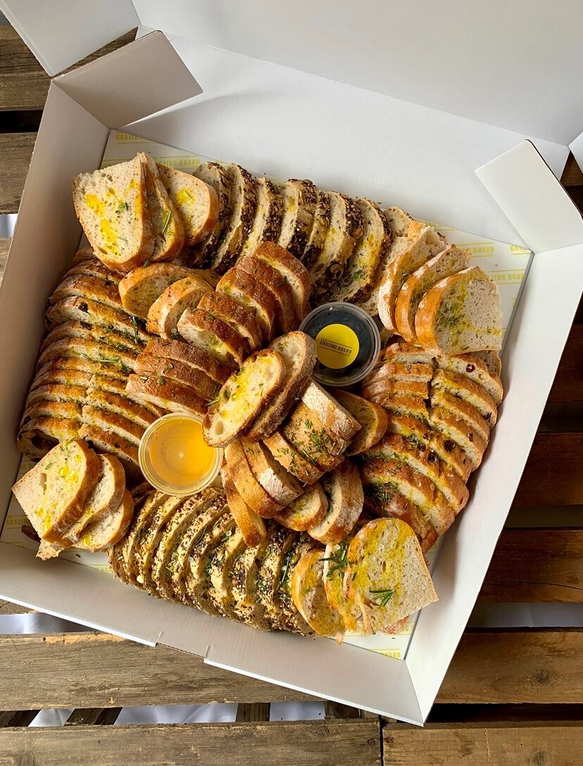 A great way to add to your platter selection. Packed full of delicious, sliced artisan breads, served with olive oil & balsamic vinegar.